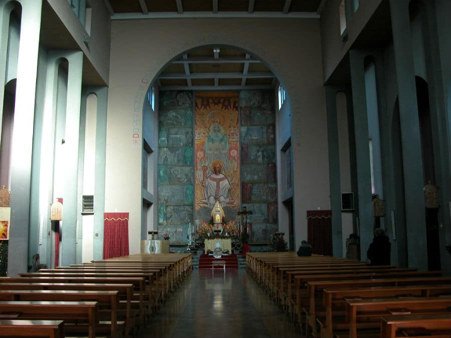 La moderna parrocchiale di San Pietro in vincoli è opera dell’architetto Carlo Siffredi, mentre la decorazione delle pareti interne si deve al pittore Luciano Bartoli. Il campanile, dono dei coniugi Cosimo Bertacchi e Marina Perodo, fu costruito nel 1929 sul modello di quello di S. Giorgio a Venezia, opera di Corrado Meano.