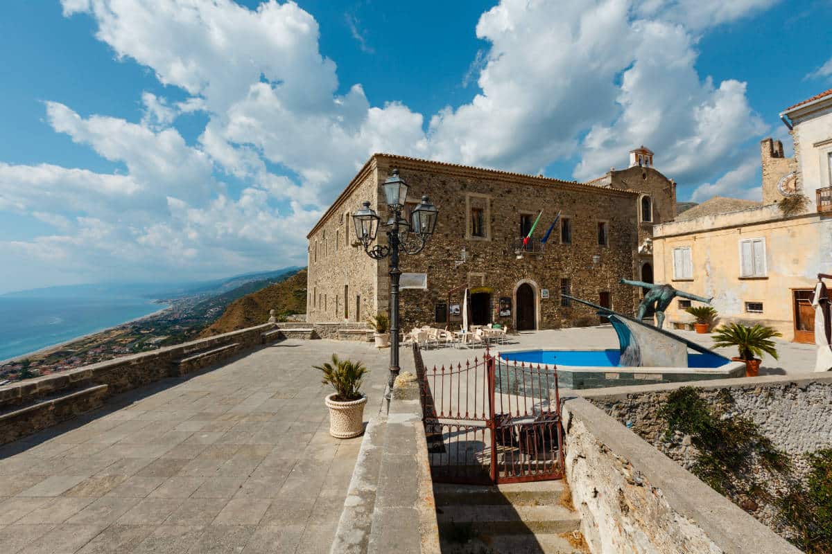 Un altro elemento che conferisce a Fiumefreddo Bruzio un fascino speciale è la sua posizione privilegiata. Il borgo si trova arroccato su un promontorio roccioso, dominando il paesaggio circostante. Le sue terrazze panoramiche, come Largo Torretta, Largo Rupe e Piazzetta Santa Domenica, offrono vedute spettacolari sul mare. Questi luoghi, inizialmente progettati per scopi difensivi e di avvistamento contro i pirati, oggi offrono ai visitatori un’esperienza unica, regalando una vista a 360 gradi sulla costa.