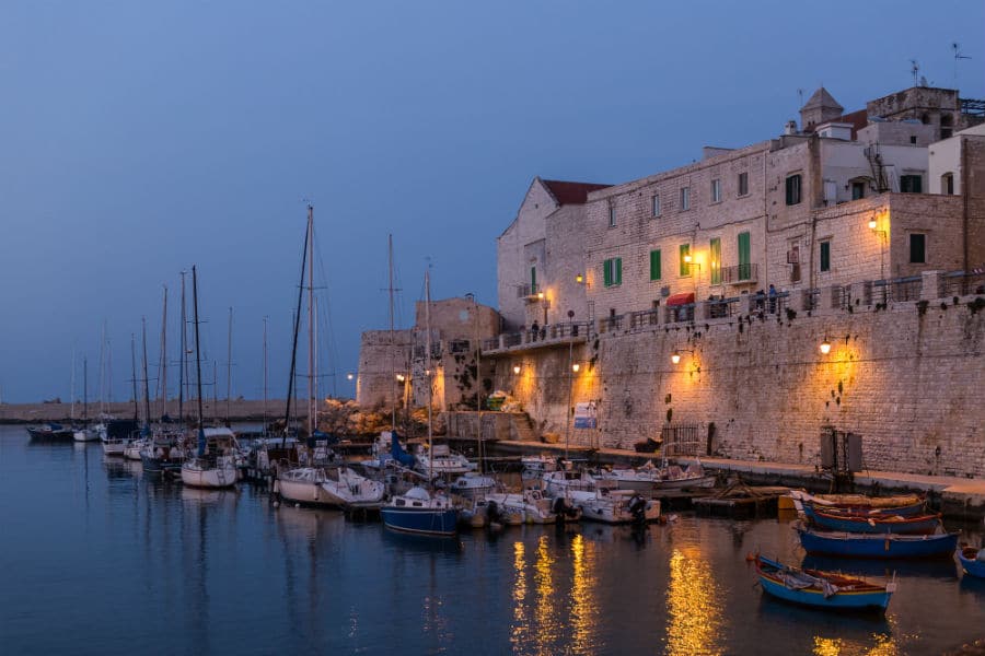 Questa perla sull’Adriatico si distingue per essere un borgo suggestivo, con un tipico centro storico dalle caratteristiche pugliesi, oltre ad avere un porto turistico con una vivace vita notturna e molte bellissime spiagge attrezzate e balneabili. La passeggiata nel paese non sarà limitata all’interno del centro storico e spazierà  anche per le strade della Giovinazzo moderna alla scoperta di pregevoli contesti sacri e di arte.