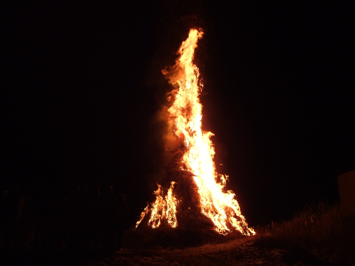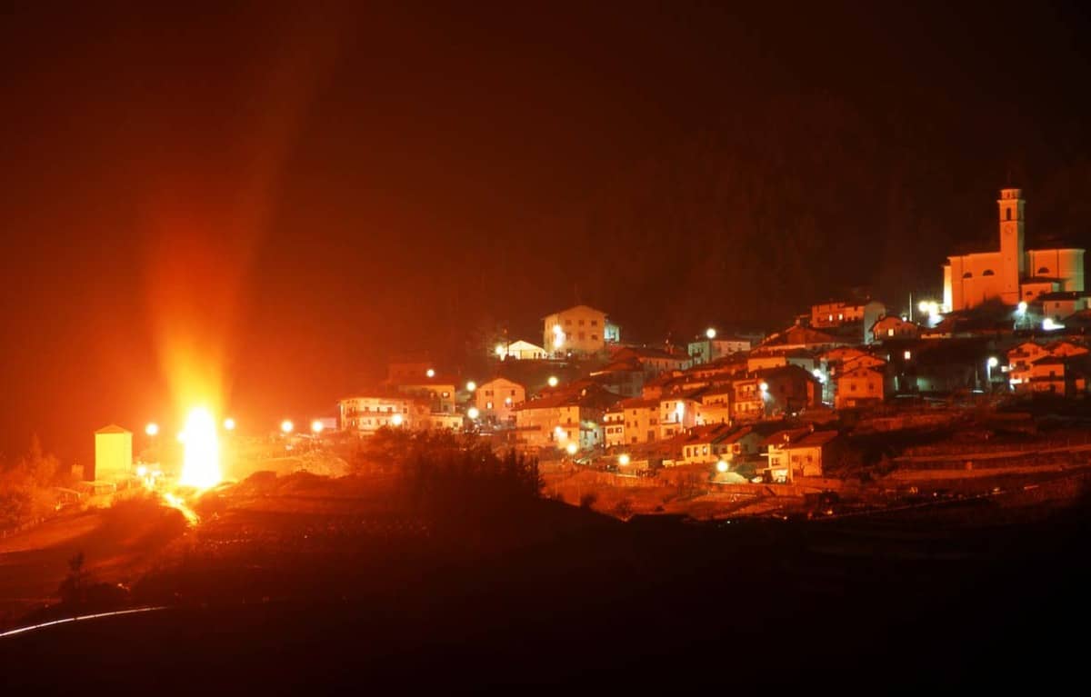 Inoltre si tiene sempre una recita improvvisata, una commedia a cui prendono parte degli attori al centro del paese, le fiaccole illuminano le strade e il vino viene trasportato per tutti nel cuore della festa. Dopo il corteo, l’Ave Maria e la festa prende vita il vero e proprio falò che è sicuramente la tradizione più bella e suggestiva da vivere in città.