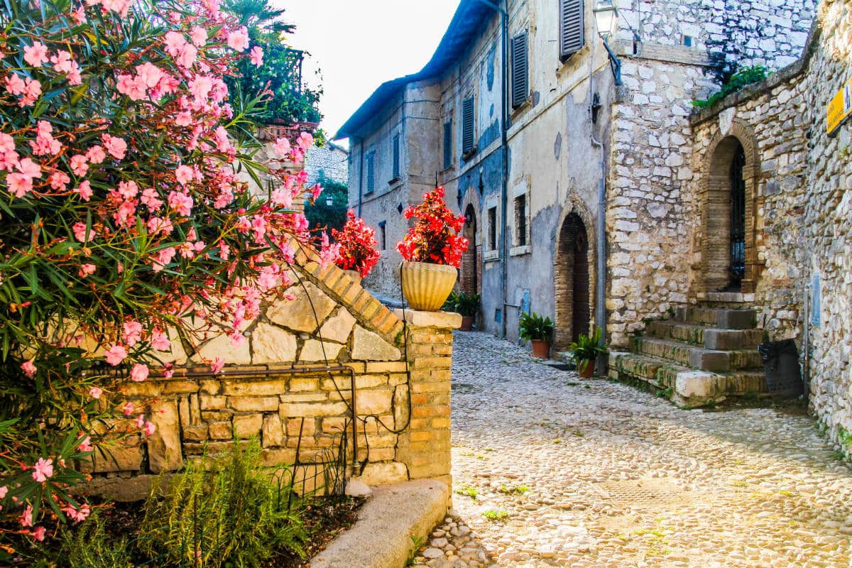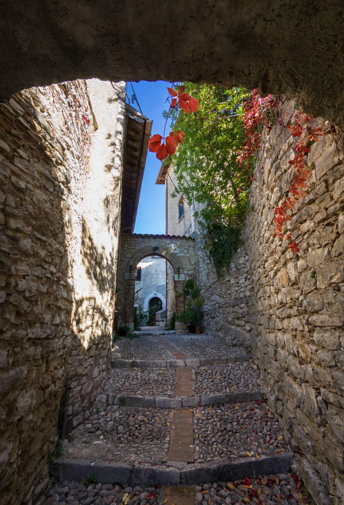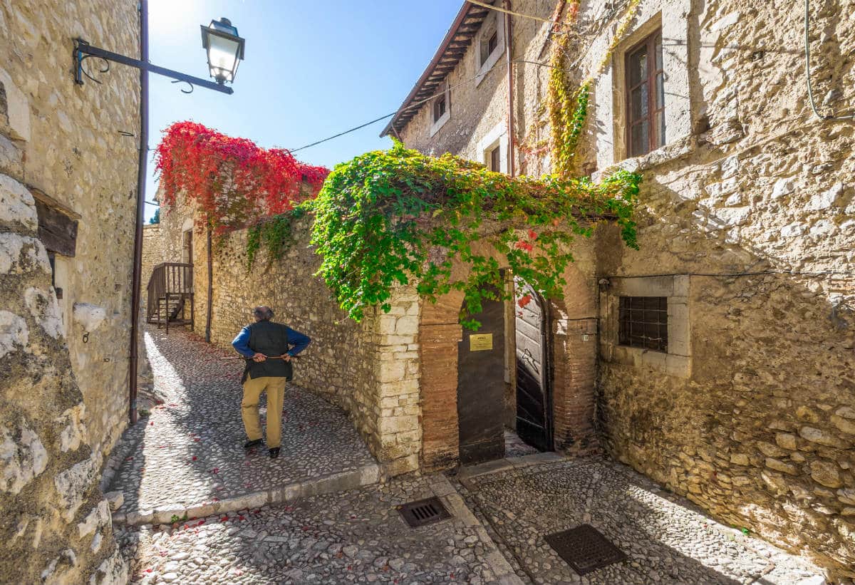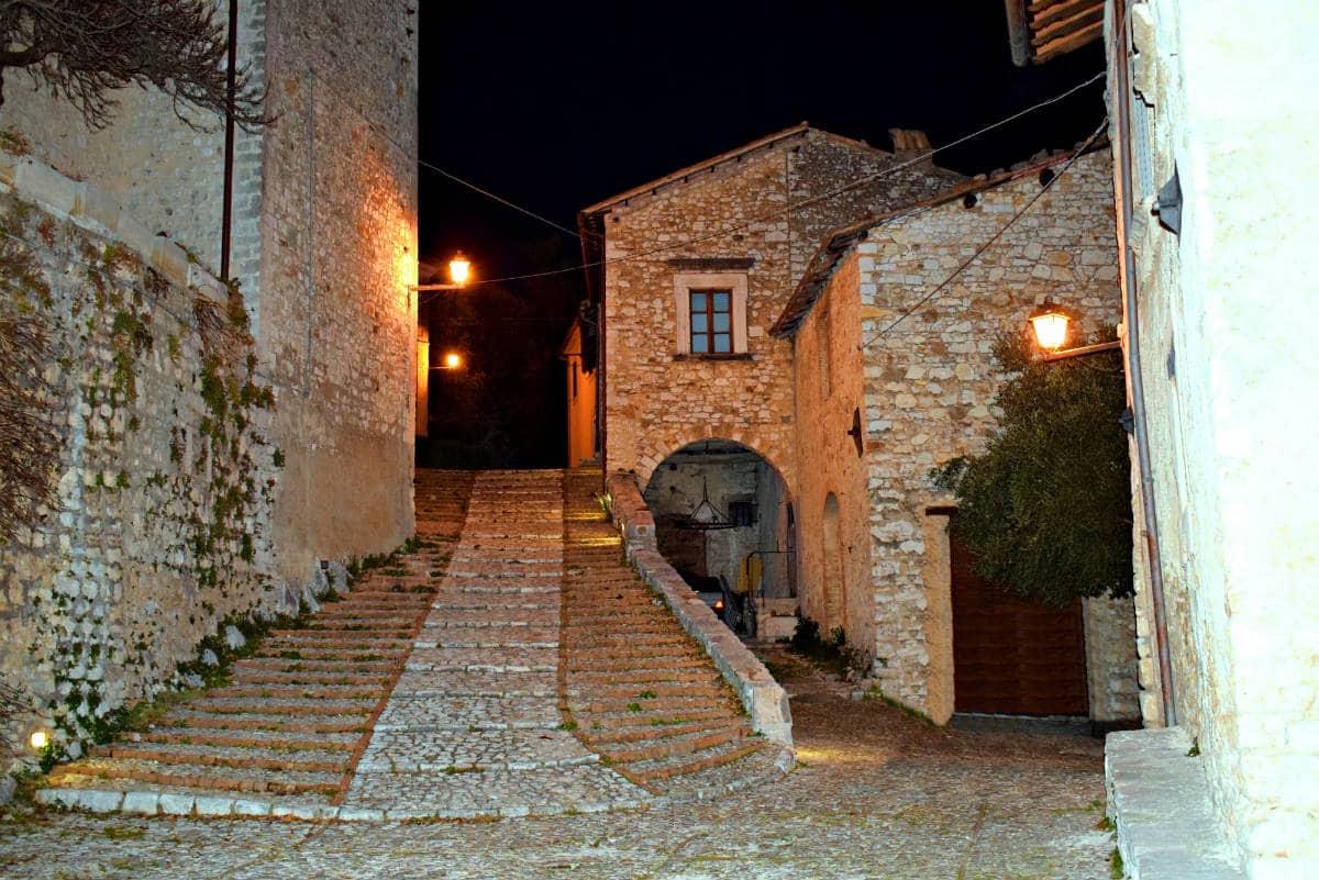 Nel borgo si entra attraverso la Porta Reatina, sormontata da un bell’arco a tutto sesto; lo scenario che si presenta, dopo averla attraversata rigorosamente a piedi, è quello di un inerpicarsi di stradine di pietra fiancheggiate da palazzi, dove ogni particolare architettonico ci parla del passato. In Via Vittorio Emanuele risalta una bella finestra guelfa ed una porta con bugnato a rilievo che nell’architrave ha la scritta: “actionum gloria finis”.