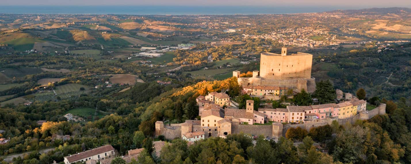 L’abitato è dominato dalla mole della Rocca, risalente alla metà del Trecento, ma recenti scavi archeologici hanno ipotizzato che questo complesso esistesse già nell’XI secolo. Sulla terrazza dell’ultimo piano si può ammirare il panorama che spazia dalle coste della Riviera romagnola fino alla Repubblica di San Marino.