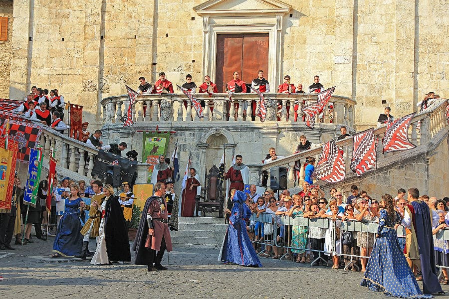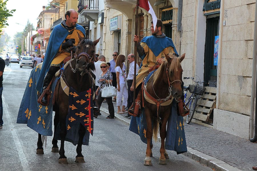 Oltre alle tradizioni pasquali, Scurcola Marsicana offre un calendario ricco di eventi che celebrano la storia e la cultura locale. Ogni agosto si svolge il Corteo Storico Medievale “Contrade e Borghi”, un’affascinante rievocazione storica che trasporta i visitatori nel passato medievale del borgo. Oltre 250 figuranti in costume storico sfilano per le strade, rappresentando i vari borghi e contrade di Scurcola. La manifestazione si affianca al Premio Internazionale d’Angiò, un evento che celebra la cultura e la storia del territorio.