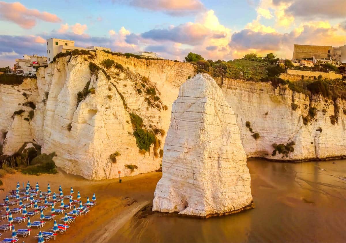 Costituiva l’ingresso principale della città. All’inizio della spiaggia detta del Castello, ovvero quella a sud del centro abitato, si erge, quasi a guardia di Vieste, un monolite alto circa 25 metri chiamato Pizzomunno, che è il simbolo stesso della cittadina garganica.