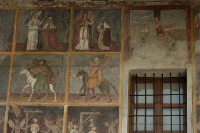 -La chiesa abbaziale, riedificata nel 1715 su progetto di Antonio Bertola, con resti di affreschi medievali e rinascimentali.