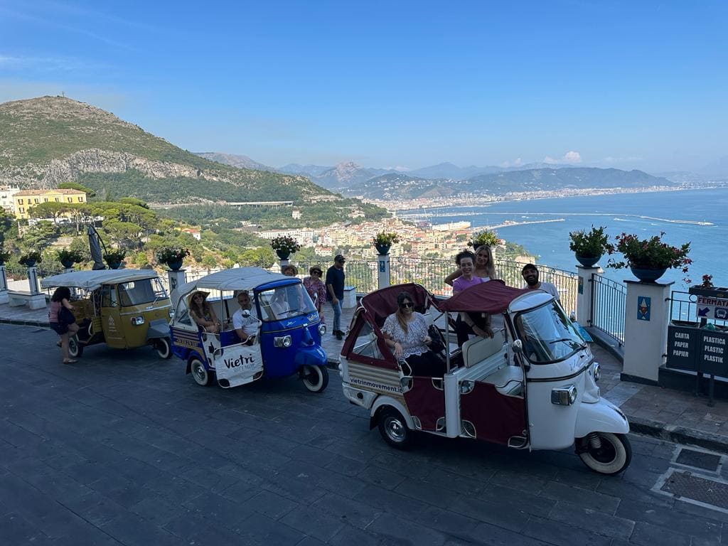 A bordo dell’iconica Ape Calessino, potrai attraversare stradine strette e panoramiche, fermandoti nei punti più suggestivi per ammirare viste spettacolari sul Golfo di Salerno. Un’esperienza perfetta per coppie, famiglie o gruppi di amici che vogliono vivere la Costiera in modo originale e divertente.