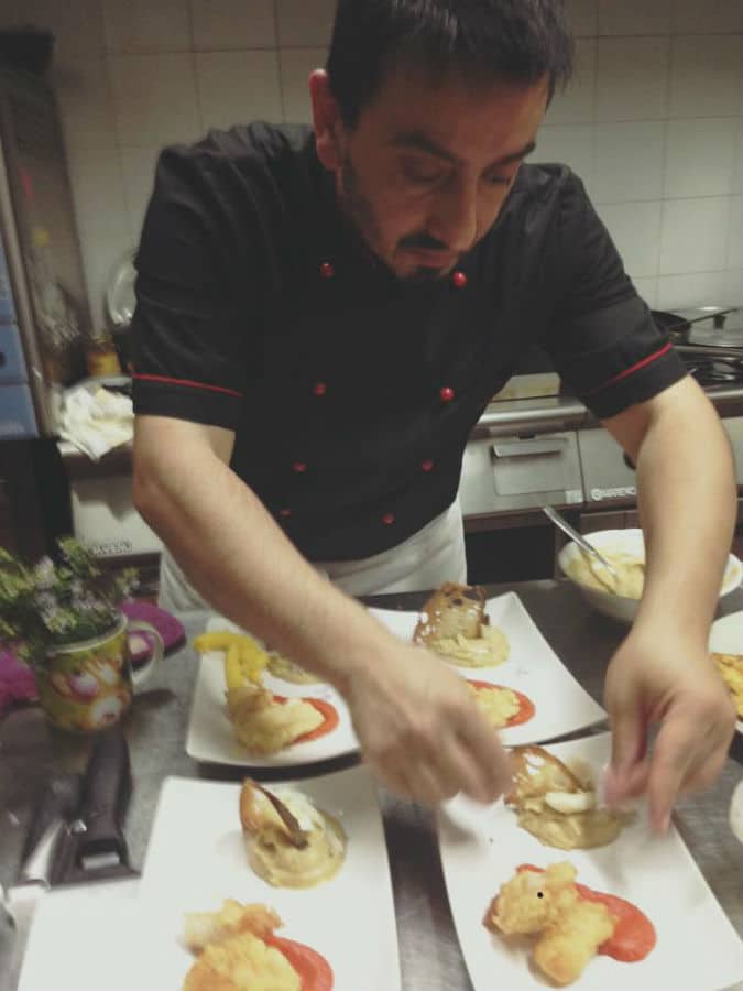 Lo Chef Domenico Starnieri e Assunta d’Ermes, Sommelier e Direttrice di Sala, puntano su prodotti locali e ricette storiche per elaborare menù che rispettano la stagionalità e le tipicità del loro territorio. La piccola sala dell’Osteria, incastonata nel centro storico di Larino, con arcate di mattoncini rossi e muri bianche con aperture in pietra a vista, offre la migliore scenografia per una cucina che lavora le materie prime del territorio con creatività. La pasta è fatta in casa e le verdure vengono dall’orto di famiglia.